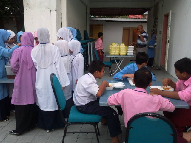 KANTIN UNTUK 100 ORANG PELAJAR , RUANG MAKAN DAN SANTAI DI TINGKAT BAWAH